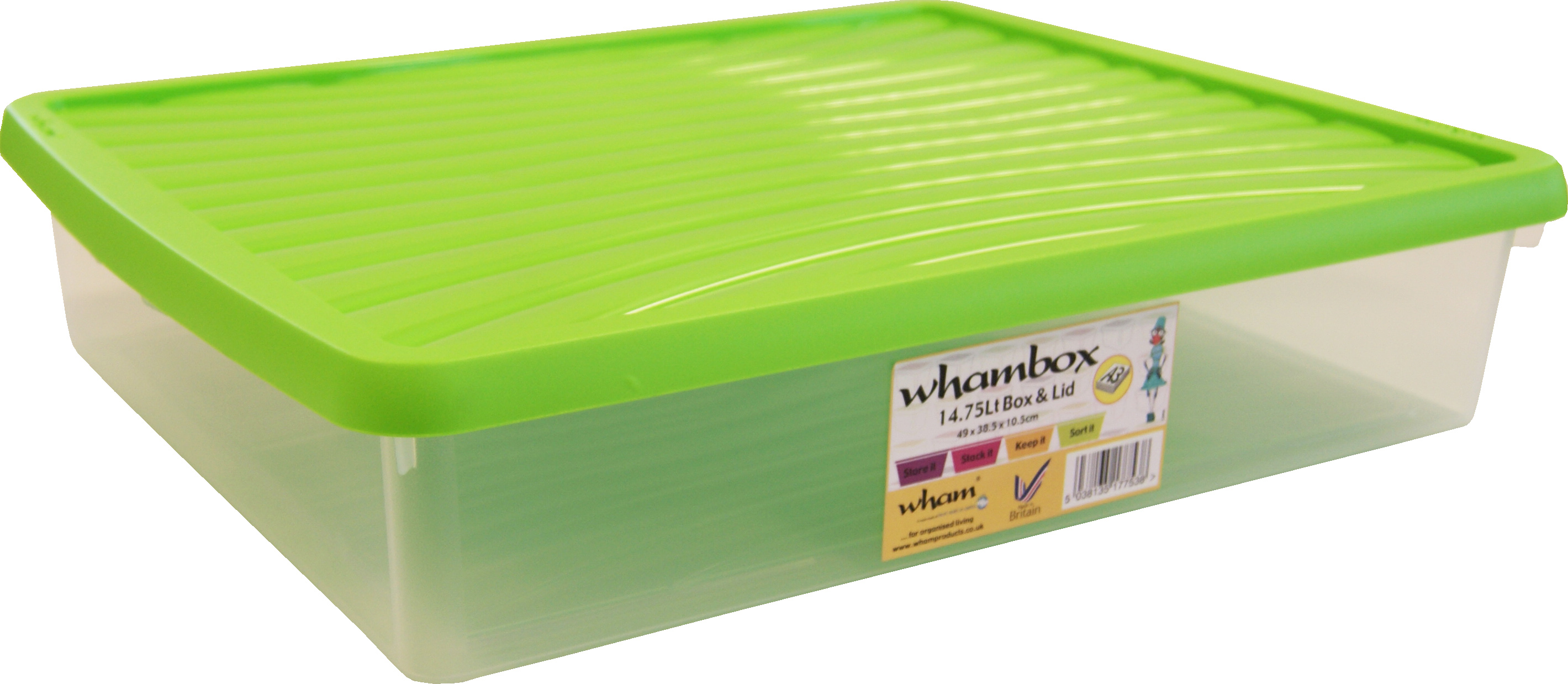 14.75 Ltr Plastic storage box With lime coloured lid